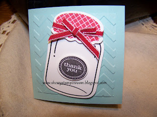 I got this set FREE, in January, when I went to Leadership in San Antonio!! A cute, and easy card! You could easily make this into a masculine card, as well.